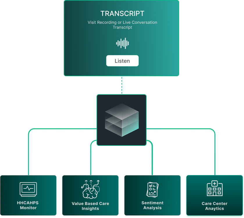 Ambient AI changes that by capturing the visit level conversation that already powers clinical documentation and structured assessments. The same ambient transcript used to generate point of care documentation, OASIS responses, and HOPE evaluations can be analyzed to understand how the visit actually unfolded. This creates a new layer of clinical visibility that has never existed in home-based care.